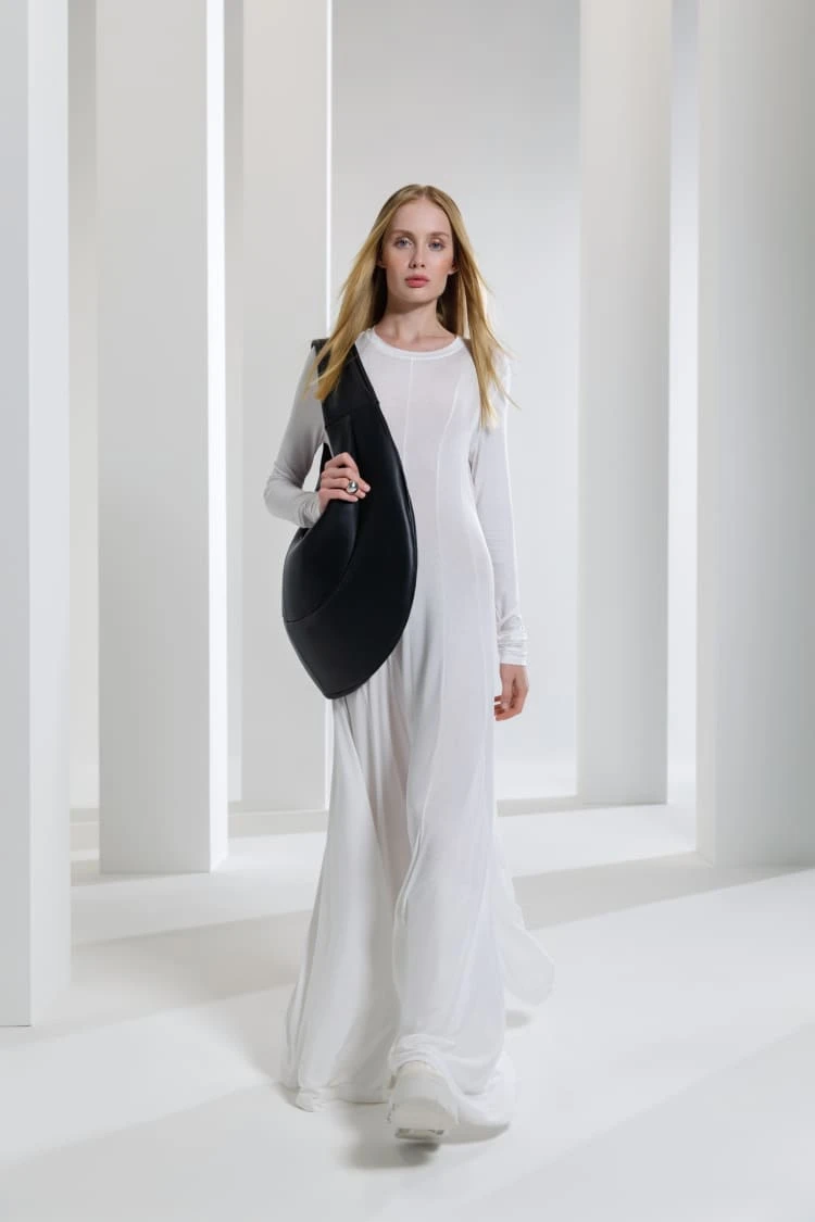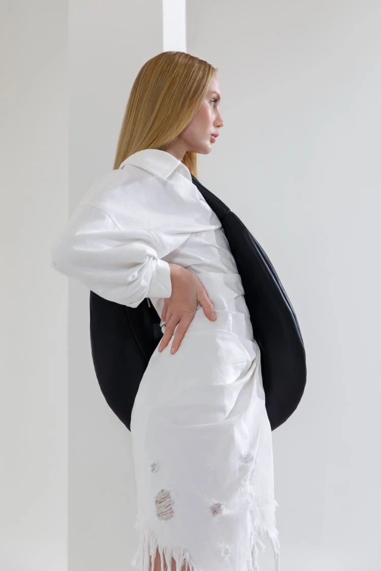 The traditional black leather purse is an all-time classic, and an absolute must-have within anyone’s personal collection of accessories. But when re-interpreted for tomorrow, the necessity of re-thinking sustainable material choices and altogether influential, fresh silhouettes is a must. The black crossbody bag is undoubtedly fresh, with its rounded slouchy appearance and ‘throw it all in’ size designed so you can be yourself without the minor inconveniences. The zip closure makes it a refreshing take on practical design.