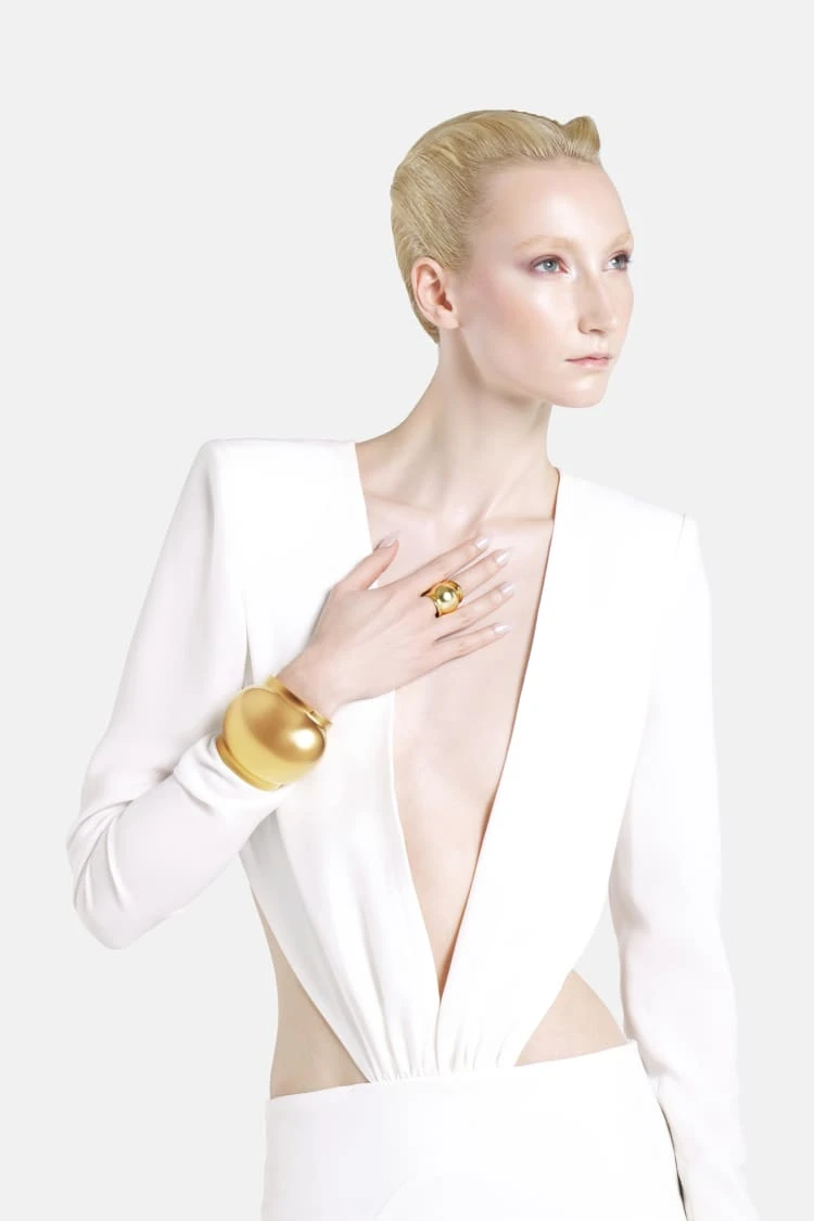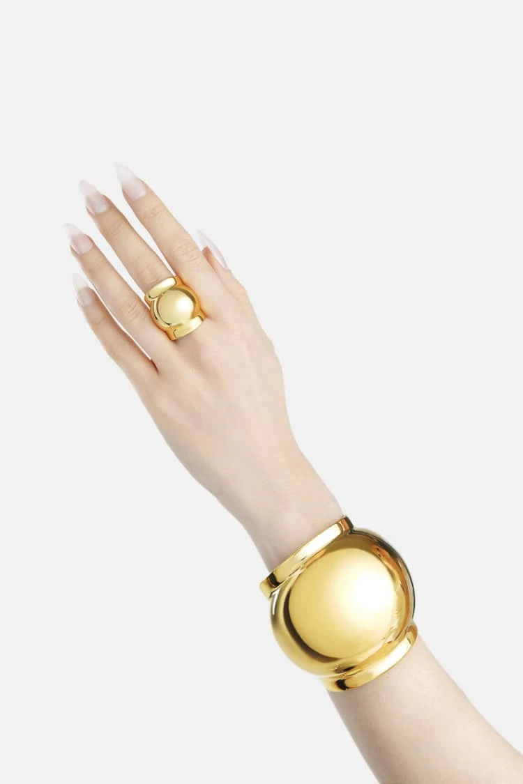 Discover the Casa Batlló Ball Bangle in radiant gold – inspired by Gaudí’s masterpiece, handcrafted elegance, perfect gift, limited edition jewelry.