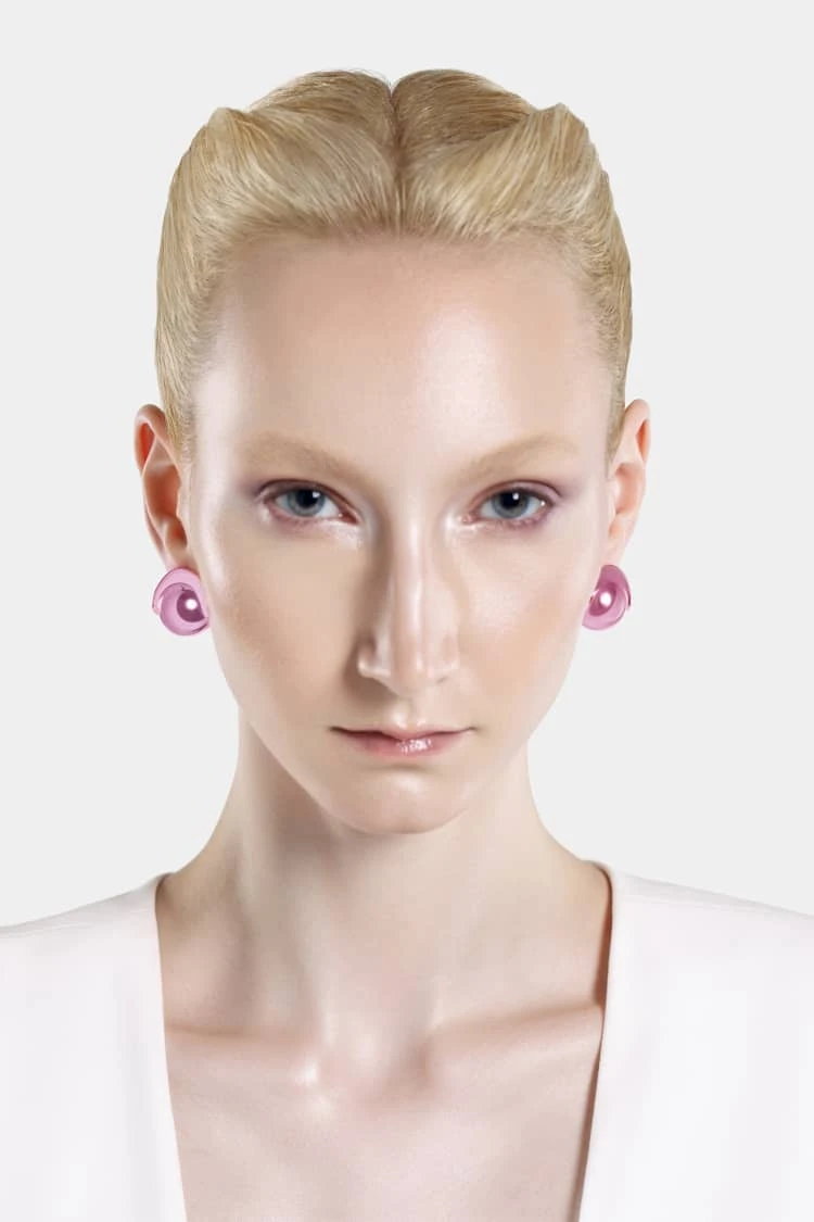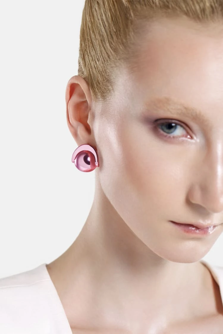 Casa Batlló ball earrings in rose gold: Gaudí-inspired jewelry, handcrafted spheres in soft rose, lightweight hypoallergenic shine, perfect modern elegance