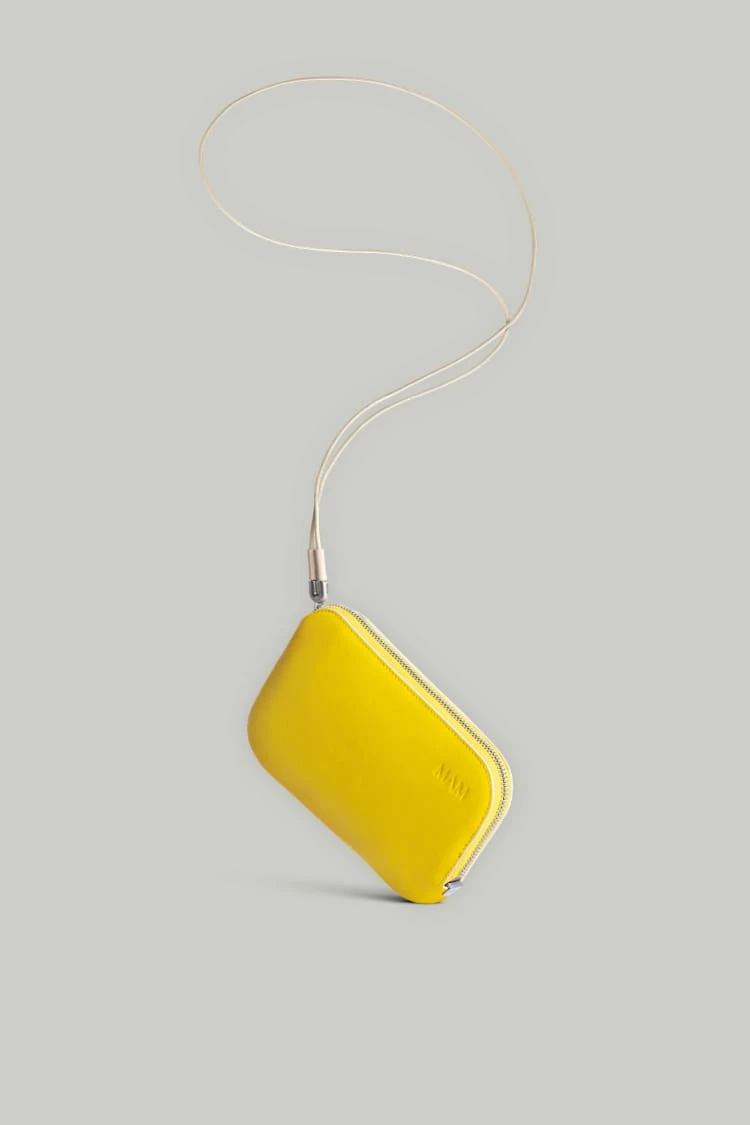This lightweight yellow crossbody bag has an adjustable yellow recycled leather handle making it simply easy and comfortable to wear. You can use your IT’SABAG to keep your phone, coins, cards, keys, and tickets. You could keep it in your bag and leave the strap hanging so you find it easily, wear it as a crossbody bag or a belt bag. You could also wear it around your wrist or leave it hanging from your pocket. However you choose to wear it, it stays comfortable and classy. MAM’s new IT’SABAG Collection is made from 100% recycled plastic with a recycled calfskin frame making it not only classy but also eco-friendly. MAM’s crossbody yellow purse blends perfectly with every outfit giving it the perfect spark to light up your fashion creativity.