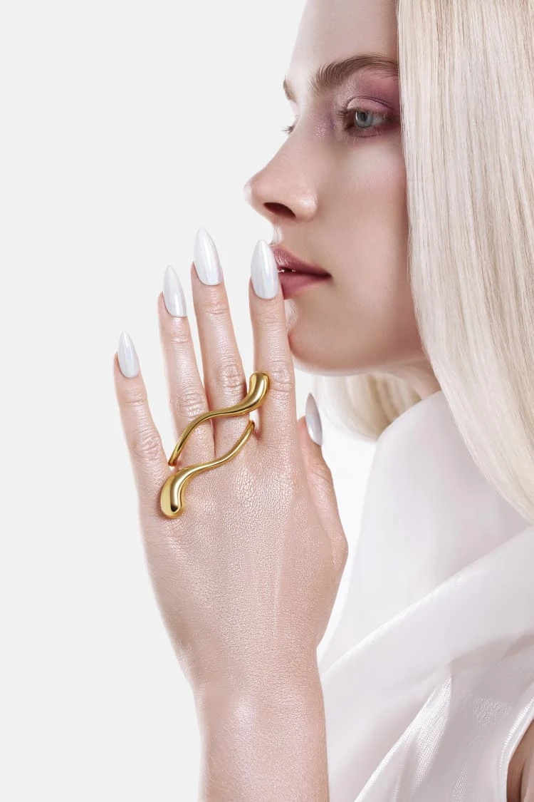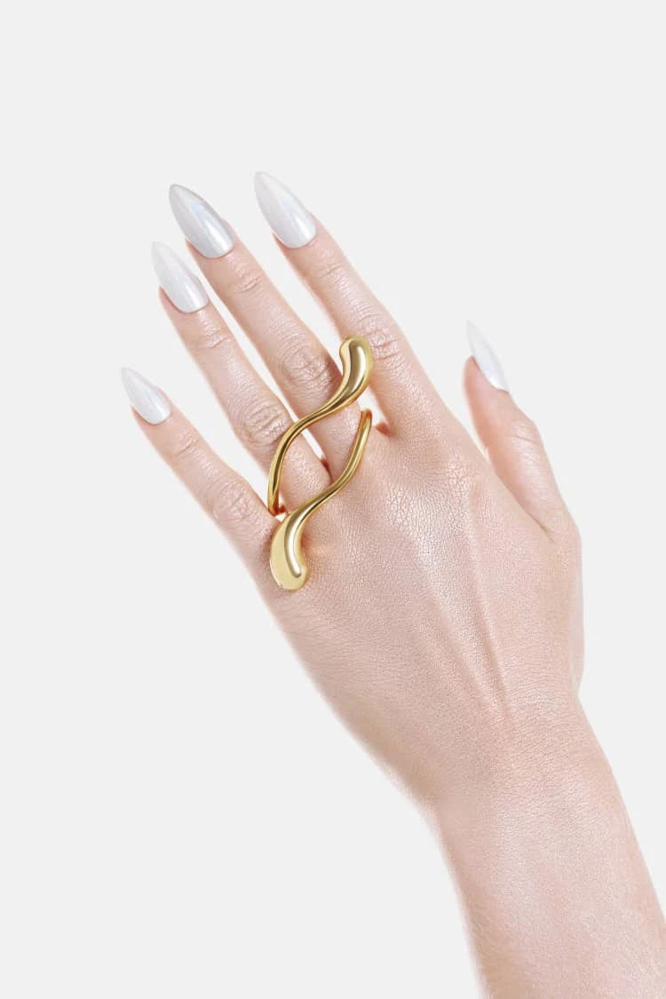 Elevate your statement style with our jewelry Double-Finger Drop Ring – gold-plated brilliance that links two fingers in one bold, fluid design. Hand-polished for mirror shine, this adjustable piece pairs effortlessly with stacks or stands alone for runway impact. Hypoallergenic, tarnish-resistant, and crafted from premium brass with a rich 18K gold finish, it’s the must-have accessory for fashion-forward elegance. Shop now for free shipping and add a modern twist to every outfit.
