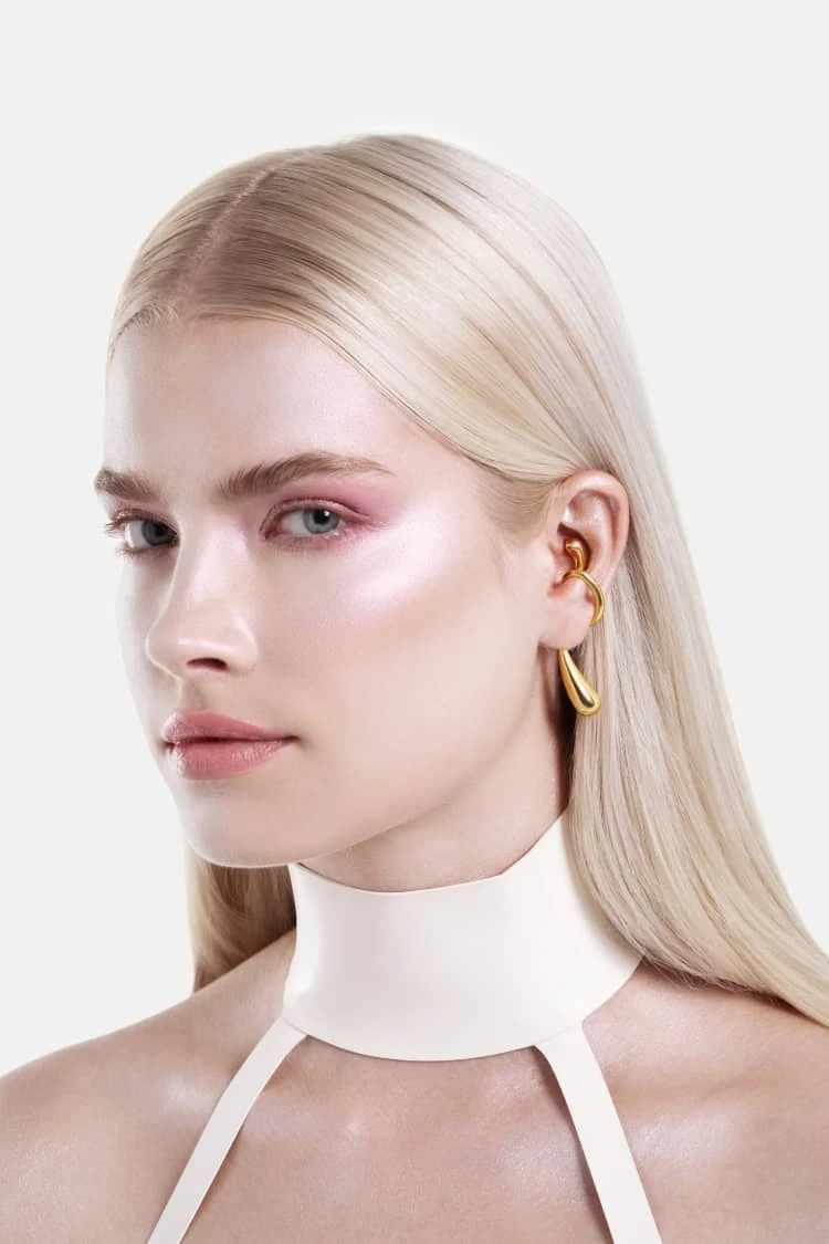 Elevate any look with our gold Drop Wrap Ear Cuff—no piercings needed. This sleek, lightweight jewelry piece hugs the ear for instant, modern sparkle.
