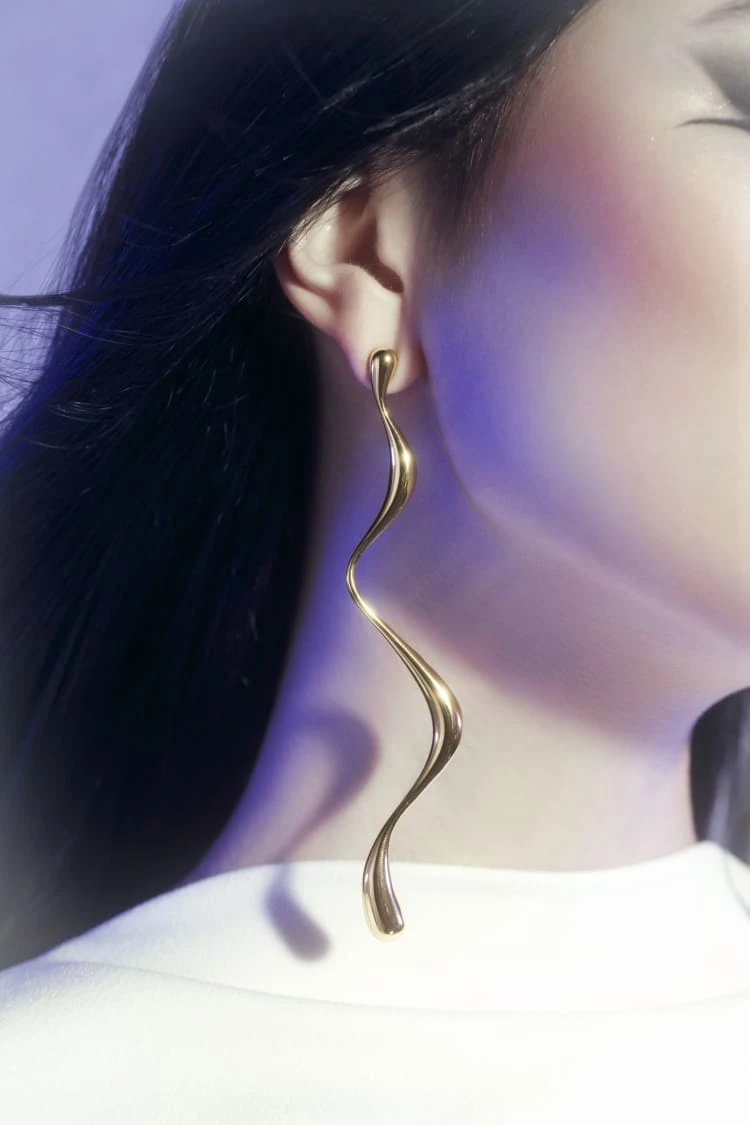 Shimmer in style with our jewelry Gold Dangle Liquid Earring—luxurious 14K gold, fluid drop design, lightweight comfort, perfect for night-out glam or elegant everyday shine.
