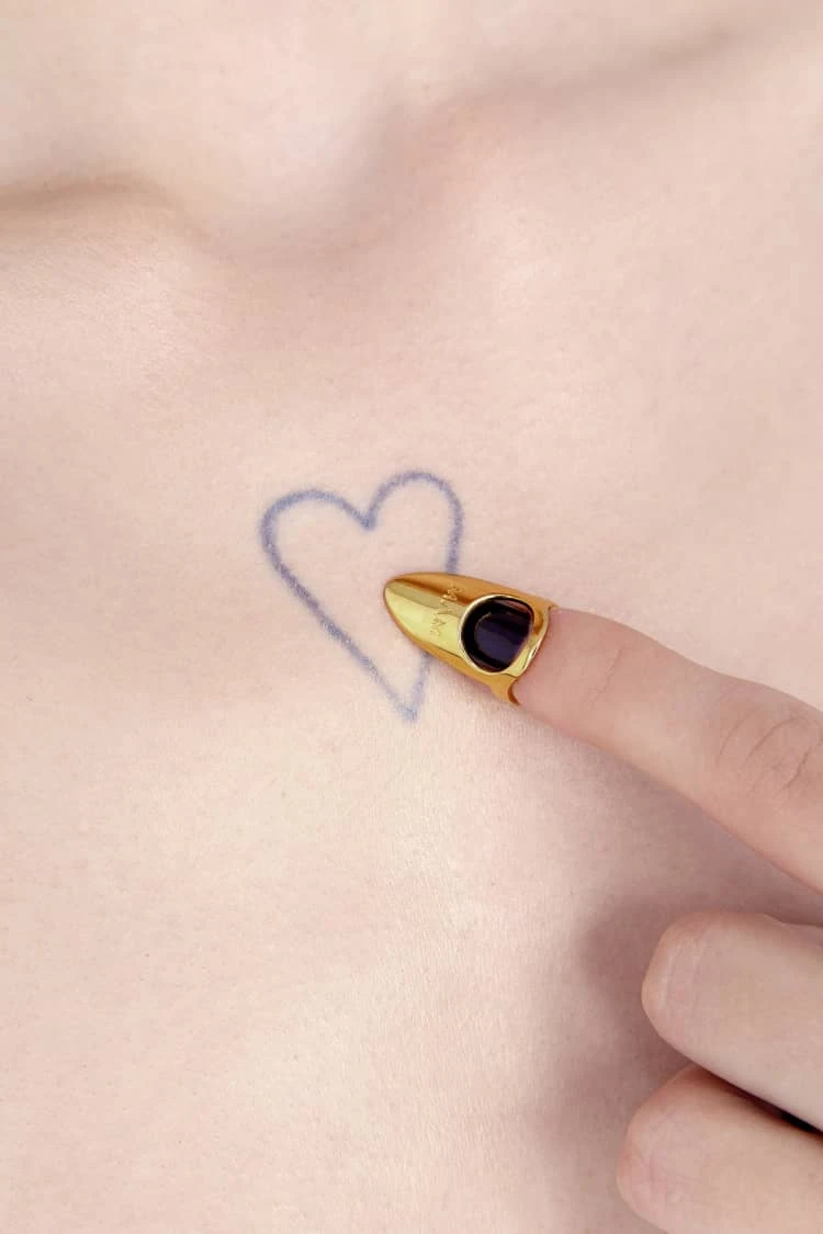 Sleek minimalist gold nail ring in 18K gold, adjustable and stackable. Modern statement jewelry for everyday wear. Shop now for timeless elegance.